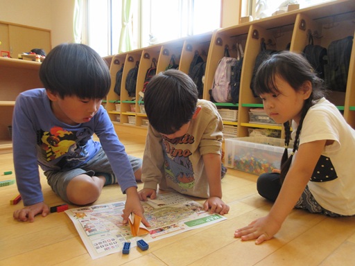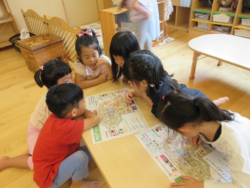 来週は遠足で東山動物園に行きます!去年同様、園内マップを用意してお部屋に置くと友だち同士で囲んで見ていました。「どの動物見たい?」「キリン!」「かわいい動物見たいなあ」と会話に花を咲かせていました!見たい動物を丸をつけられるようにもしていて、真剣に見定めて丸をしている子もいましたよ。去年見られないなかった動物をたくさん見られるといいな♪