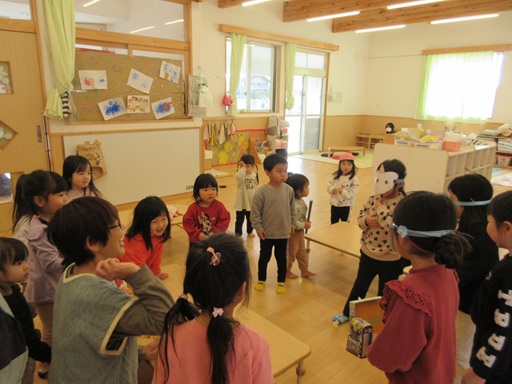 「一緒にしよう~」と始まったかくれんぼ!”見つかりにくい所に隠れたい!”という思いが今まで以上に強くなっている子が増えてきていて、最後まで見つからないと「隠れてるの全然気づかんかった?」「じょうずに隠れたやろ?」と友だちや保育士に聞くのですよ。先に見つかっていた子も「隠れるのじょうずやな」「どこに隠れたか教えて!」とリスペクトしていて、どんどんレベルが上がってきています!保育士も長い時間見つけられないこともあり、うまく隠れられた時のこどもたちの”やったぜ!”の笑顔でちょっぴり悔しくなります!!