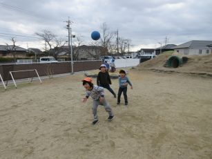 最近、ドッチボールをすることが増えてきたばら組さん。転がしドッチを始めていた子達を誘ってドッチボールを初めていましたよ。ドッチのルールもだんだんとわかってきて、あたったら外野に出ることやあてたら戻ることなど声を掛け合えるようになってきました。
