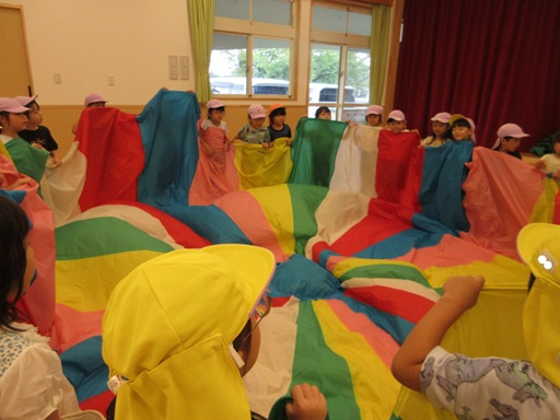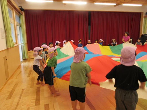 今日は体育教室で夏前から取り組んでいるバルーンをしました。前と変更点があり、先生の説明を真剣に聞くこどもたち。変更前の動きを覚えていたので、頭で分かっていても体が自然に動き戸惑う姿も。それでも諦めることなく、先生と何回も練習していましたよ。こどもたち同士でアドバイスをする姿もあり感動しました。