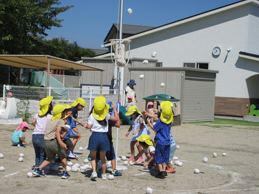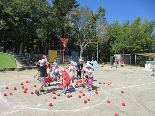 金曜日、今日と玉入れゲームをしました。チーム戦でしたので勝ち負けがあり、負けたチームはとても悔しがるのです。今までだったら”負けたからつまらない””勝てないからもうしない”とすぐにやめてしまうこどもたちでしたが、今回は”悔しい!次は勝ちたい!”と意欲がとてもあり、「もう1回勝負しよ!」と繰り返し楽しんでいます。そんなこどもたちの姿をお家の人にも見てもらいたいなと思い、こどもたちに運動会でするのはどうかと提案してみると「いいね!」「しよしよ!」と大賛成!他の競技についても話し合い、明日から本格的に頑張ろうねと話をしました。