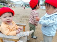 10月のさくらんぼ組さん最近のさくらんぼぐみさんはお外遊びが大好きで、ドアを指さして“お外へ行きたい”とアピールしています。ドアを開けると自ら帽子を持ってきて“被せて”と保育者に手渡し、外へ行きたい気持ちをいろんな形で表現しているんですよ♪また、下駄箱まで行くと保育者の靴を覚えていて“どうぞ”と出して準備してくれる可愛い姿も…♡