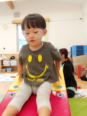 雨が降っても元気ないちごさん!雨の日が多く園庭で遊ぶことがなかなか出来ませんでしたが、室内ではカラーボックスで大きい滑り台をしてたくさん身体を動かして遊びました!