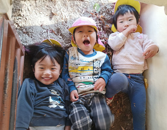あっという間に12月ですね!今日も元気いっぱい園庭で遊ぶもも組さん。赤や黄色など色とりどりの葉っぱが落ちているのを見て、「きいろあったよ」「こっちはあか!」と教えてくれます。葉っぱに穴が空いているのを見つけると、木の枝をその穴に通してみるのです。すると葉っぱが木の枝に引っかかり、釣りの様に持ち上がりました。その様子を見ていた周りの子も木の枝を探し、「みてみて」「はっぱつれたよー」と葉っぱ釣りが始まりましたよ。自分たちで遊び方を見つけていくこどもたちの姿に驚かされました。これからも友だちと一緒に新しい遊びを広げていければと思います。