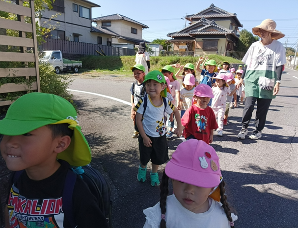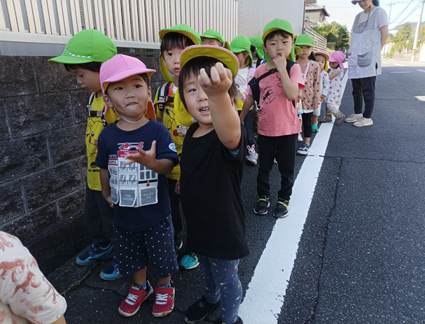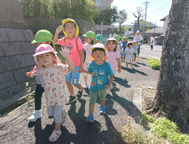 今日は、ゆり組の子と一緒に手を繋ぎお散歩に行きました♪お兄さんやお姉さんが「一緒にいこう!」と誘ってくれるのもあり、嬉しそうに手を繋ぐもも組さん。道路を渡る時は、保育者やゆり組さんの真似をして手を挙げる姿も!!最後まで手を繋ぎ歩くことが出来ました♪お給食の時には、「おさんぽたのしかったね~」「またいこっか!」「ごみしゅうしゅうしゃいた!」などお散歩のときのお話を楽しそうにするのでした!