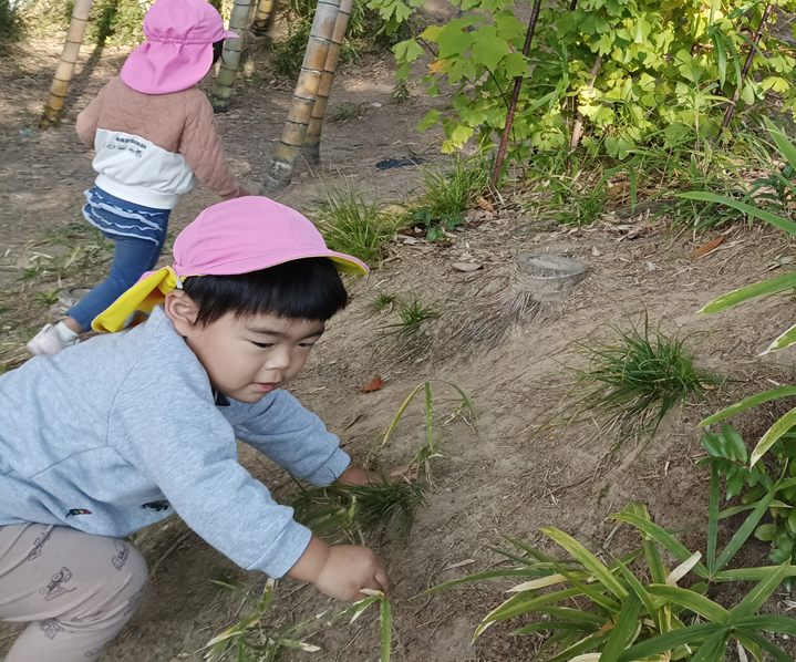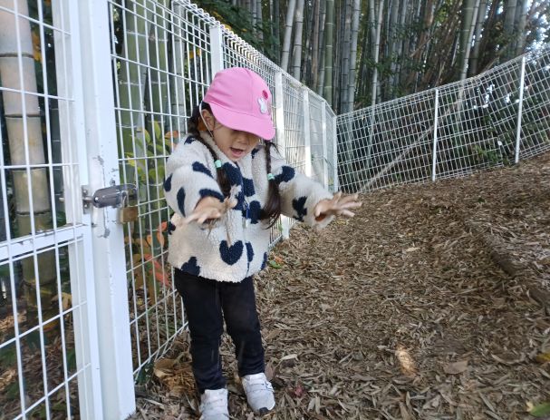 今日は、どんぐりの森の斜面を降りたり登ったりするのを楽しむももぐみさん。おしりで滑ったり、登る時に滑るのが楽しくて繰り返し遊んでいましたよ♪「〇○ものぼれるんだよ!」と誇らしげな顔で登って見せてくれる子もいて可愛らしかったです!さくらんぼのような木の実も見つけ、手の平いっぱいに集めるのでした!!