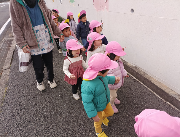 今日は、この前おじいちゃん・おばあちゃんに書いたお手紙をポストに投函しに行きましたよ♪お友だちと手を繋いで出かけるのが楽しいようで、「一緒につなごう!」と誘う子の姿も増えてきました!ポストに着くと保育者の抱っこで投函したり、「とどくよ!」と自分で手を伸ばしいれる子もいました。園に着くと、「たのしかった!!」という声が聞こえてきたので、またお散歩にも出掛けたいと思います♪
