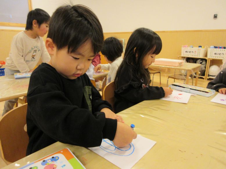 朝から園庭で体操をすると、保育室で遊んでいた子もお外へ行く姿が見られました♪友だちを誘って築山へ行くと、一緒に滑るこどもたち!うつ伏せで滑ることも恐れず、一緒になって楽しむこどもたちが微笑ましかったですよ。保育室では、大好きな制作をしたり、お絵描きをしたり、粘土をしたりと思い思いに楽しむすみれさんでした。
