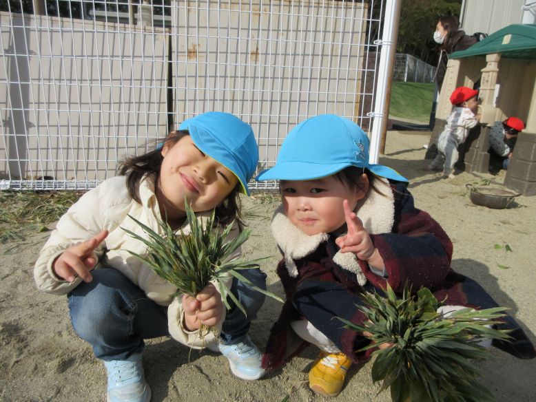 天気が良く、園庭へ行ってみるものの「お外さむい~」のすみれさん。そんな中、園庭から曲が流れ、ゆりさんも一緒に、みんなで体操をしました。曲が聞こえて園庭へ来る子の姿や、体を動かしているうちに少しずつ笑顔になるこどもたちも見られ、体も心もぽかぽかに♪体を動かすことが大好きな子が多いので、かけっこをしたりクライミング遊具に登ったりと思い思いに遊ぶこどもたち。三角屋根の遊具も、気づいた時には自分たちの力で登れるようになった子の姿が良く見られるようになり、日々の成長を感じました。