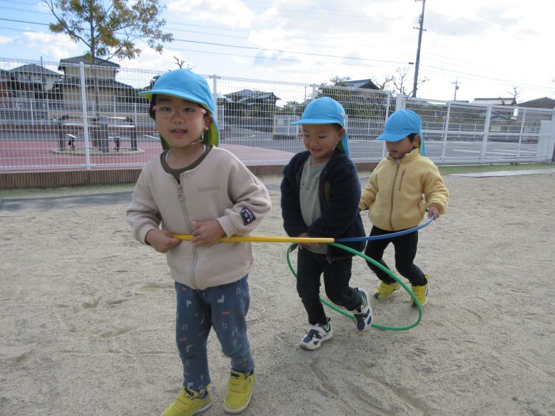 今日は園庭へ遊びに行くと、「フラフープやりたい!」のすみれさんで、「でんしゃしようよ」と友だちと連結し、電車ごっこを楽しむ姿にほっこりでした。さら粉をしたり、パズルをしたりと思い思いに楽しんだ後は、ホールで発表会の練習へ♪「ホールでお歌しよう」と伝えると、「やったー!」と練習に期待を持って取り組む姿が見られました!引き続き、みんなで楽しみながら練習を行っていけたらと思います。