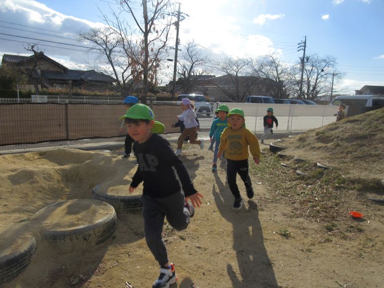 昨日から、ぽかぽかマラソンが始まりました。12月の終わりからしているラジオ体操をしてから、みんなで園庭をぐるっと走ります。走り終わるころには、ジャンバーなしでも身体がぽかぽかになって、「たくさんはしった!」と満足そうに保育室に戻っていきますよ。