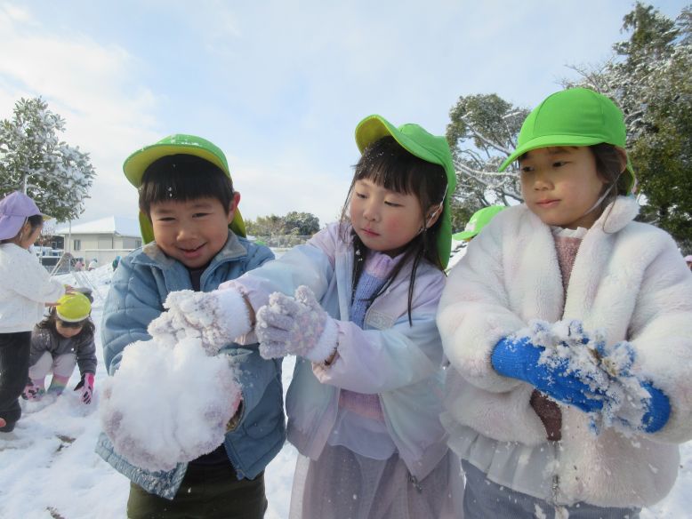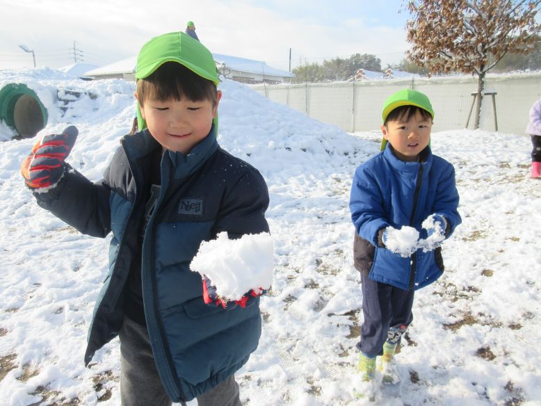 今日は雪が積もりましたね!朝から「雪だ~!」と大喜びで登園して来たゆり組さん。朝一番に園庭へ出て、雪合戦を楽しみました♪雪玉を沢山作って、友だちや保育者と全力でや雪合戦をしていると、あっという間に身体はポカポカに♪1時間近く思いきり雪遊びをしましたよ。