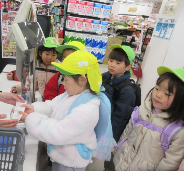 先週した焚き火から、何かを焼きたいと話すこどもたちの姿があったので、今日はみんなで一号館までお買い物に行きました。少し遠かったですが、頑張って歩きましたよ!スーパーについてから、4チームに分かれて順番にお買い物をしました。お目当てのものをみんなで探し、見つからないと店員さんに聞くこともできましたよ!「これください」と伝えながら店員さんに手渡し、お金を払ってから自分のリュックに入れて頑張って持って帰ってきました。近々また焚き火をして楽しみたいと思います♪