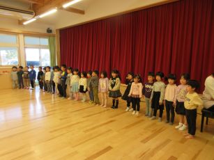 今日はばら組さんのお別れ会でした。朝からホールの飾りつけに力が入るこどもたち。実際に飾りつけをしてみると、「この辺なんか寂しいね」「もっと作ろう!」と、足りない分も急ピッチで作っていましたよ。飾り付けの後は、朝の会で歌の練習をしました。どんな気持ちで歌うか、改めてみんなで確認してから歌うと、とても優しい綺麗な声で歌っていましたよ。
