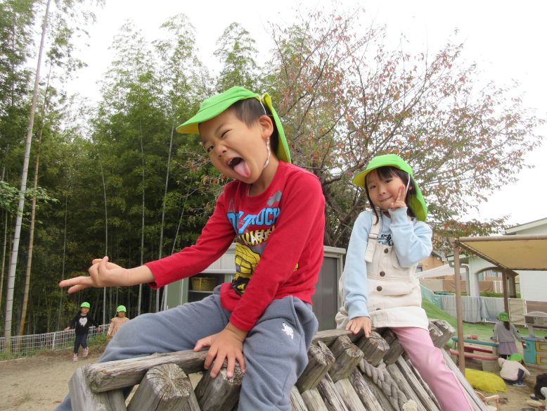 朝から園庭で沢山遊びました。今日は特に虫探しが男の子に大人気で、みんなでトンボや蝶々を虫網を持って追いかける姿が見られました。「おったおった!」「あ、こっちにちょうちょおる!」と声を掛け合いながら追いかけていましたよ。虫探しをしていると、タンポポを発見。「みてみて。おはなみつけた。けっこんしてくださいのおはな!」と嬉しそうに見せてくれて、そのまま結婚相手を探しに出かける姿に、思わずクスっと笑ってしまいました。砂場で料理を作ったり、木の実集めに夢中になったり、好きな遊びを思い切り楽しんだゆり組さんでした。