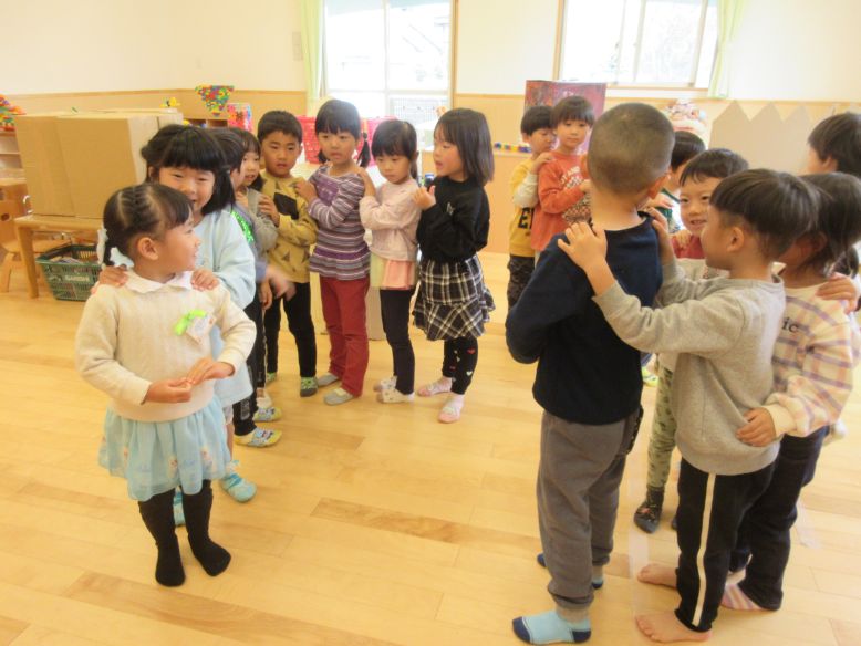 今日は誕生日会もしましたよ。みんなにたくさんインタビューをしてもらって、とても嬉しそうでした。好きな人を聞かれると、たくさんのお友だちの名前を答えていましたよ。じゃんけん列車も大盛り上がりでした。
