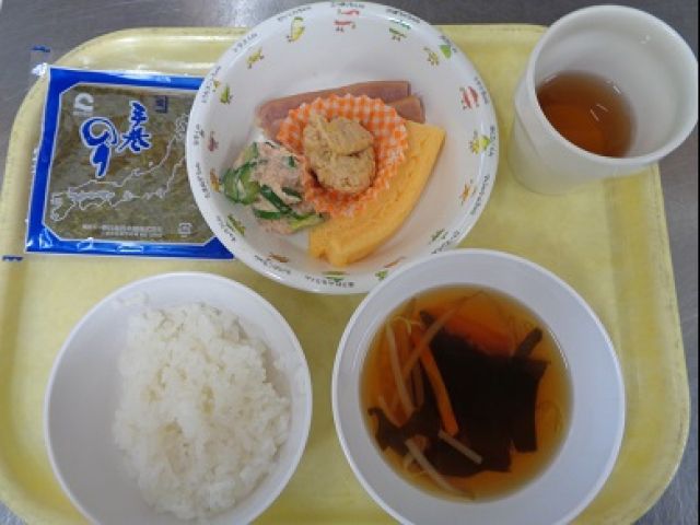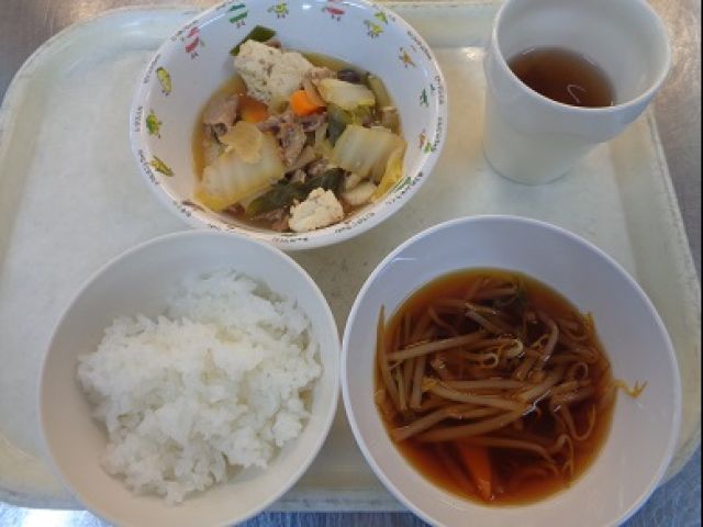 『すまし汁』もやし・わかめ・にんじんが入りました。