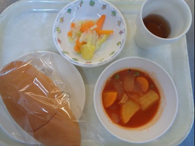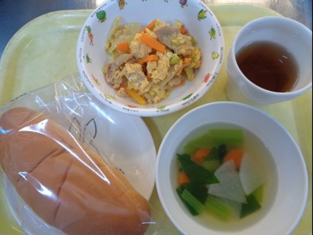 『スープ』だいこん・にんじん・小松菜が入ったコンソメ味のスープです。