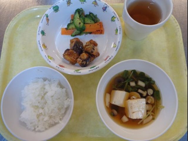 『すまし汁』豆腐・しめじ・豆苗が入りました。