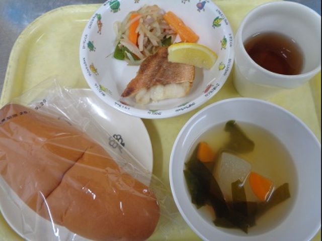 『赤魚のソテー』赤魚は白身でクセがなく、ふっくらした触感が特徴です。ビタミンAが豊富で視力の低下を防いでくれます。レモンをかけて頂きました。