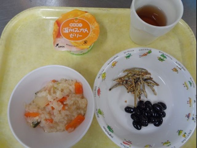 『七草がゆ』かぶ・かぶの葉・白菜・にんじん・鶏ささみフレーク・だしの素・しょうゆで汁を作り、炊き上がったご飯を加えてひと煮たちさせ器に盛ります。1月7日に無病息災を願い、お正月のつかれた胃腸を休めるために食べる伝統的な行事食です。