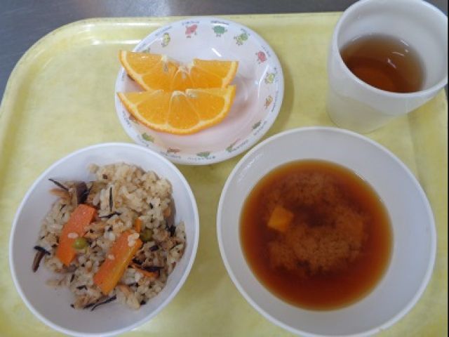 『ひじきごはん』干ししいたけ・ひじきを水で戻し、柔らかくなるまで下茹でします。にんじん・グリンピース・ツナ缶を加え、煮ます。さとう・しょうゆ・みりん・だしの素を加え味が染みたら、汁と具に分け、汁を洗米した米と一緒に炊飯器に入れ、既定の量まで水を加え炊飯します。炊き上がったご飯と具材を混ぜ合わせて仕上げます。