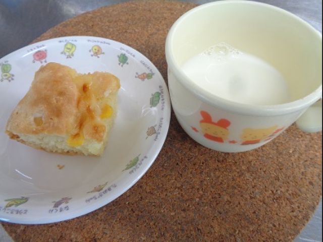 『チーズ』型抜きチーズ・・・サッカーボール・かに・コアラなど色んな形をしていて、子どもたちが楽しみにしています。