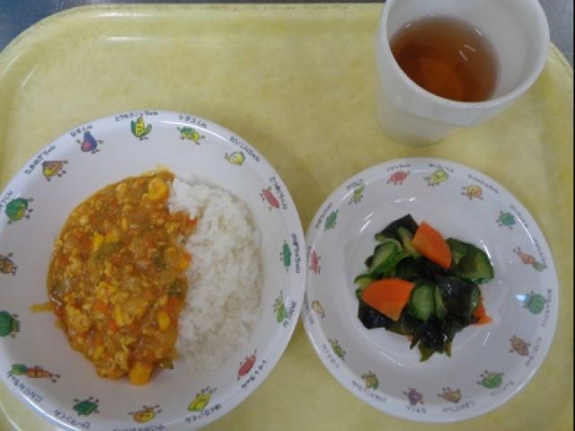 「キーマカレー」も「きゅうりとわかめのサラダ」も好評で喜んで食べてもらえました。